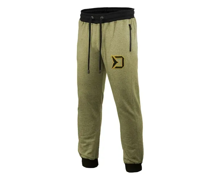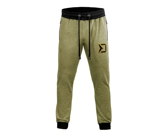 Spodnie dresowe z serii Delphin RAWER to stylowe spodnie, które nadają nowy wymiar komfortowi. Są dostępne w kolorze ciemnozielonym, w połączeniu z wygodnymi czarnymi ściągaczami w nogawkach i w talii. Charakterystyczną cechą tej serii są dwie kieszenie zapinane na zamek błyskawiczny, zaprojektowane tak, aby włożyć ręce do środka lub po prostu trzymać w środku coś, czego będziesz potrzebował pod ręką. O wysokiej jakości tego produktu świadczy również zastosowanie topowych zamków błyskawicznych YKK. Zamki błyskawiczne są wyposażone w logo Delphin. Z przodu jest małe czarne logo Delphin, pasujące do ogólnego projektu spodni. Ściągacz w talii można łatwo regulować za pomocą czarnych pasków z wytłoczonym logo Delphin RAWER na ich obu końcach.