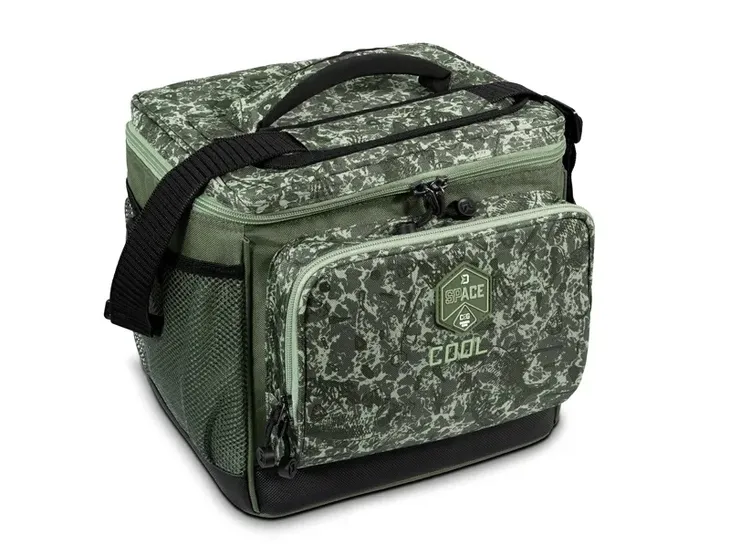 COOL SPACE to torba termiczna przeznaczona głównie do transportu zanęty lub żywności w celu utrzymania niskiej temperatury. Cała torba wyposażona jest w warstwę izolacyjną. Dodatkowo warstwa ta jest amortyzowana (6 mm) dla lepszej stabilności nawet gdy jest pusta. Służy również jako dodatkowa izolacja, która zapobiega zmianom temperatury wewnątrz. Warstwa ta została zaprojektowana tak, aby pokryć zewnętrzną krawędź oraz zakryć obszar pod zamkiem błyskawicznym, aby jeszcze bardziej uszczelnić przestrzeń wewnątrz. Bez warstwy pod zamkiem błyskawicznym cieplejsze powietrze bardzo łatwo dostawałoby się do środka torby. Torba posiada dwie siatkowe kieszenie po bokach oraz jedną większą kieszeń z przodu do przechowywania i ochrony akcesoriów. Dla lepszego komfortu COOL SPACE posiada amortyzowany pasek na ramię.