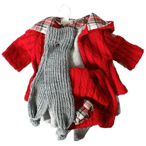 W skład kompletu wchodzą sukienka, sweterek i dodatki, np. czapeczka, majteczki, skarpetki lub rajstopki.