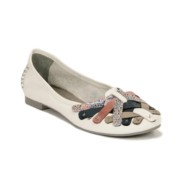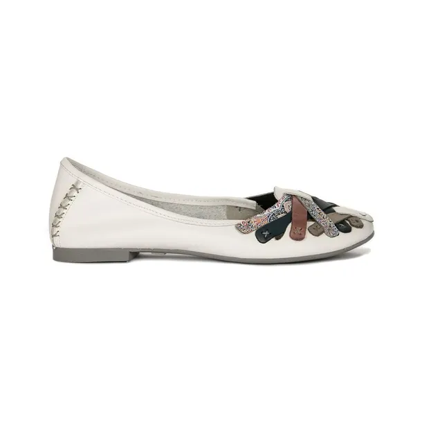 Balerinki to typ obuwia, który szturmem podbił serca kobiet w każdym wieku i na całym świecie. Są symbolem niesamowitej wygody, ponadczasowej klasy i niezaprzeczalnej kobiecości. Prezentowany model wykonany został z naturalnej skóry licowej w kolorze białym. To gwarantowany super look niezależnie od tego jaki styl pozostałej części garderoby wybierzemy. Wnętrze to również skóra naturalna z bardzo miękką i zarazem wygodną wkładką. Balerinki to typ obuwia, który doskonale sprawdza się zarówno na co dzień, w pracy, czy też podczas wieczornych spotkań w gronie przyjaciół. Dlatego też warto zadbać o to, aby były nie tylko stylowe ale – przede wszystkim – trwałe i wygodne.