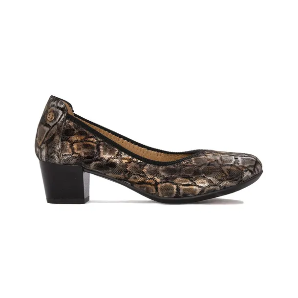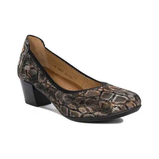 Klasyka i nowoczesny design – tak można określić nową propozycję marki Maciejka. Przedstawiamy piękne, eleganckie i niezwykle kobiece czółenka damskie tej znanej marki. Cholewka uszyta z naturalnej welurowej skóry w brązowym kolorze z lakierowanym zwierzęcym wzorkiem w kolorze złotym. Usztywniony zapiętek zapobiega deformacji obuwia i pozwala utrzymać stopy we właściwej pozycji. Dzięki wyściółce ze skóry i dobrze wyprofilowanej skórzanej wkładce podklejonej miękką pianką, odczuwamy wysoki komfort użytkowania. Niewysoki, stabilny obcas w naturalny sposób wysmukla nogę i stanowi solidną podstawę dla całej sylwetki. Na zewnętrznej stronie pięty delikatne logo marki. Piękne, wygodne i ponadczasowe. Idealne do sukienki, spódniczki, ale także do spodni. Jakość: I. Kraj produkcji: Polska.
