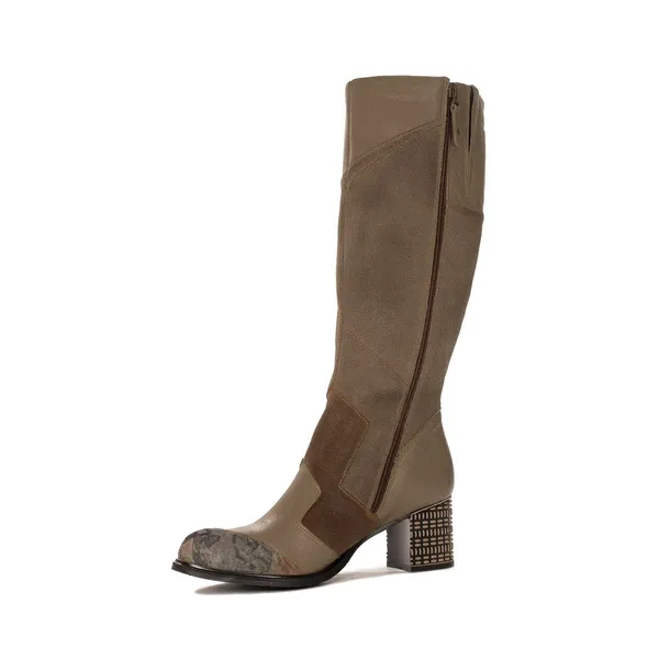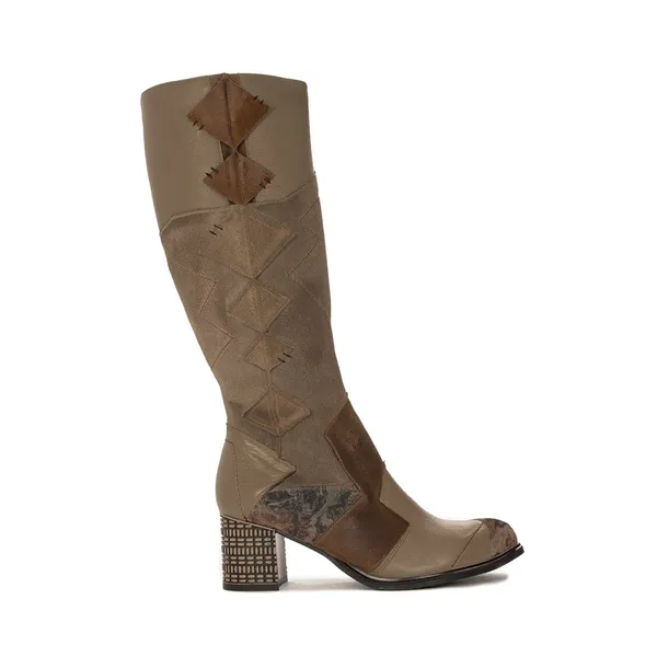 Maciejka to polska marka, której niezwykle fantazyjne produkty zachwycają nie tylko oryginalnym designem, ale również jakością surowców, wykonaniem, bogatym wzornictwem, szeroką gamą kolorów i komfortem użytkowania. Przedstawiamy kolejną, ponadczasową propozycję tej marki na sezon jesienno-zimowy, piękne damskie kozaki. Cholewka ozdobiona została wykonana ze skóry naturalnej licowej oraz welurowej w kolorze ciemny beż. Cholewka od wewnętrznej strony posiada wygodny zamek na całej wysokości cholewki, który ułatwia zmianę obuwia. Szerokość/obwód cholewki na górze wynosi 40 cm (w rozmiarze 38). Wkładka to miękka i przyjemna w dotyku tkanina, który zapewnieni stopom komfort i wygodę, a wnętrze jest ocieplone polarem. Podeszwa z wysokogatunkowego tworzywa na obcasie o wysokości 6,5 cm doskonale izoluje stopy od podłoża chroniąc przed zimnem i wilgocią. Model ten posiada migdałowy nosek. Jakość: I. Wyprodukowane w Polsce.
