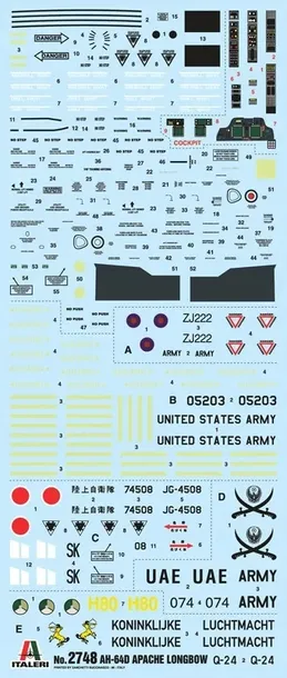 AH-64 Apache można uznać za najsłynniejszy śmigłowiec szturmowy w historii. Został zaprojektowany do działania na linii frontu oraz do wykonywania misji przeciwpancernych, przeciwhelikopterowych, szturmowych i bliskiego wsparcia w „każdych warunkach pogodowych” i w każdym środowisku operacyjnym. Długi łuk AH-64D to ulepszona wersja ze zwiększonymi możliwościami ofensywnymi i przyjęciem zaawansowanych systemów namierzania celów. „Longbow” charakteryzuje się radarem AN/APG-78, umieszczonym w kopule umieszczonej nad głównym wirnikiem. Podniesiona pozycja umożliwia wykrywanie celów i użycie rakiet, podobnie jak przeciwpancerny Hellfire, podczas gdy helikopter jest ukryty za wzgórzami, drzewami lub budynkami i poza zasięgiem wzroku wroga. Głównym uzbrojeniem jest działo łańcuchowe M230 kal. 30 mm zamontowane pod kabiną. AH-64D jest w stanie załadować na swoich czterech słupach na krótkich skrzydłach znaczną różnorodność broni ofensywnej, takiej jak rakiety i pociski.