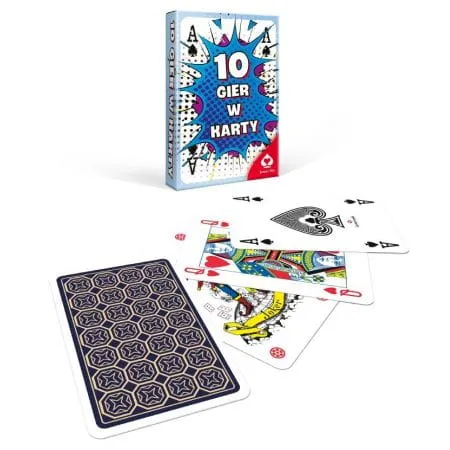 Klasyczna talia kart w której znajdziesz instrukcję z aż dziesięcioma grami karcianymi takimi jak poker, makao, Piotruś, brydż i wiele innych.