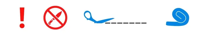 - Koło trytytek delikatnie naciąć folię, a następnie wzdłuż ostrożnie rozciąć folię UWAŻAJĄC na pokrowiec, uwalniając materac z pierwszej folii ochronnej
