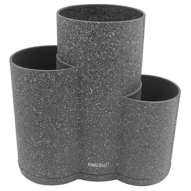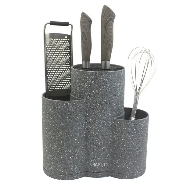 Potrójny stojak blok na noże i przybory kuchenne. Wypełnienie bloku stanowią pręciki z tworzywa sztucznego. Dzięki temu można przechowywać w nich noże o różnej grubości, szerokości i długości. Pozostałe 2 komory można wykorzystać dowolnie na przybory i akcesoria kuchenne.