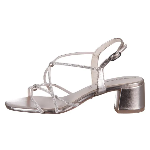 Te eleganckie sandały to idealny wybór dla kobiet, które cenią sobie styl, wygodę i wysoką jakość. Wierzch butów został wykonany z tworzywa wysokogatunkowego i został ozdobiony pięknymi kryształkami błyszczącymi się na kolorowo z tego samego materiału, co nadaje butom eleganckiego i modnego wyglądu. Wnętrze sandałów zostało wykonane z wygodnej tkaniny oraz tworzywa, co zapewnia maksymalny komfort noszenia przez cały dzień. Wkładka została wykonana z tworzywa przypominającego skórę, co zapewnia dodatkową wygodę i pozwala na swobodne poruszanie się. Podeszwa buta została stworzona z wysokogatunkowego tworzywa, co gwarantuje nie tylko wygodę, ale także trwałość i stabilność podczas chodzenia. Sandały mają 5,5-centymetrowy obcas, który dodaje sylwetce kobiecej i eleganckiej linii. Buty zapinane są na sprzączkę, co pozwala na precyzyjne dopasowanie do stopy i zwiększa komfort użytkowania. Ten model sandałów doskonale sprawdzi się na wieczorne wyjścia, do pracy lub na inne okazje, gdy chcesz prezentować się stylowo i elegancko. Te damskie sandały firmy Tamaris w kolorze złotym to połączenie wysokiej jakości, modnego designu i wygody, co czyni je idealnym dodatkiem do letniej garderoby. Z pewnością przyciągną one uwagę i dodadzą Twojemu stylowi blasku i elegancji.