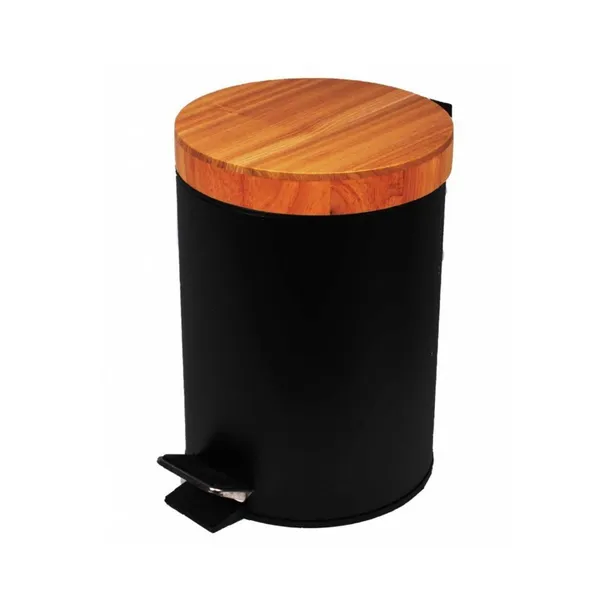 Stalowy kosz na śmieci z klapką bambusową otwieraną pedałem.Wykonany jest ze stali nierdzewnej lakierowanej na kolor czarny matowy