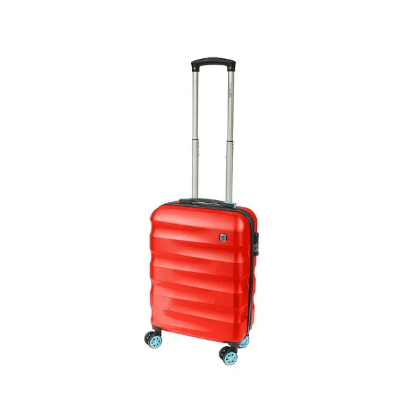 Mała walizka kabinowa włoskiej marki Dielle z kolekcji 150. Korpus wykonany z wytrzymałego i trwałego ABS-u. Wygodne uchwyty z boku i u góry ułatwiają umieszczenie jej bagażniku auta lub zdjęcie z lotniskowego transportera. Cztery podwójne obrotowe kółka gwarantują komfort przemieszczania się. Wysuwana teleskopowo , regulowana rączka stelaża. Charakterystyczne przetłoczenia walizki podkreślają niepowtarzalny wygląd tej kolekcji. Przewożoną zawartość chroni zamek szyfrowy w standardzie TSA. Wnętrze wyłożone elegancką podszewką w kontrastowym , niebieskim kolorze. Walizka charakteryzuje się wyjątkowym wyglądem oraz jakością wykonania. Wymiary walizki spełniają normy bagażu kabinowego większości linii lotniczych.