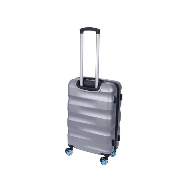 Średnia walizka włoskiej marki Dielle z kolekcji 150. Korpus wykonany z wytrzymałego i trwałego ABS-u. Wygodne uchwyty z boku i u góry ułatwiają umieszczenie jej bagażniku auta lub zdjęcie z lotniskowego transportera. Cztery podwójne obrotowe kółka gwarantują komfort przemieszczania się. Wysuwana teleskopowo , regulowana rączka stelaża. Charakterystyczne przetłoczenia walizki podkreślają niepowtarzalny wygląd tej kolekcji. Przewożoną zawartość chroni zamek szyfrowy w standardzie TSA. Wnętrze wyłożone elegancką podszewką w kontrastowym , niebieskim kolorze. Walizka charakteryzuje się wyjątkowym wyglądem oraz jakością wykonania.