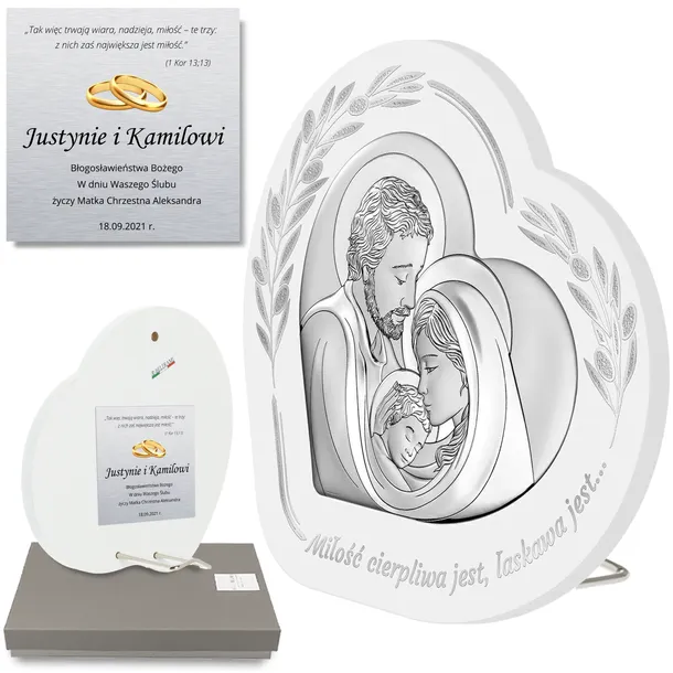 Obraz Świętej Rodziny - prezent na Ślub z grawerem 6811W - 16 x 15 cm