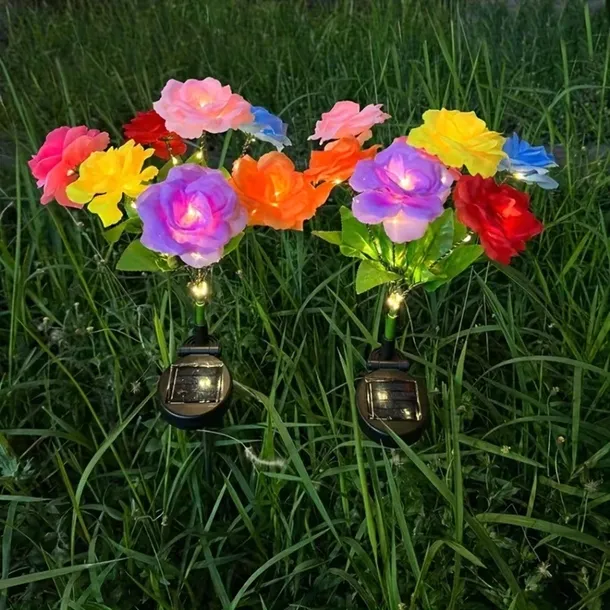 2 x Lampa Solarna Ogrodowa Wbijna Kwiat Róż Róży Ozdoba Kwiaty Solarne Led