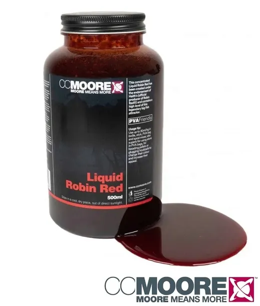 Właśnie te wspaniałe cechy skłoniły CC Moore do prac nad płynną wersją Robin Red® Liquid Robin Red® został stworzony uchwycić i skoncentrować wszystkie te właściwość w łatwej do stosowania płynnej postaci. Płynny Robin Red® to gęsty, słodko pikantny atraktor i dodatek o ciemnoczerwonym kolorze. Ten produkt oddaje wszystko to co najlepsze w Robin Red® w łatwej w użyciu płynnej formie.