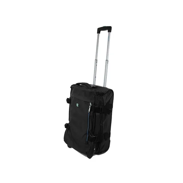 Mała torba podróżna na dwóch kołach włoskiej marki Dielle. Spełnia normy bagażu kabinowego większości linii lotniczych.Wykonana z bardzo wytrzymałego poliestru wzmacnianego. Posiada teleskopowo wysuwany stelaż, dwa stabilne koła, wzmacniane dno. Wygodne uchwyty z boku i u góry ułatwiają umieszczenie jej w bagażniku auta lub zdjęcie z lotniskowego transportera. Dwie kieszenie zewnętrzne na podręczne drobiazgi. System regulowanych bocznych pasów pozwala na dopasowanie kształtu torby w zależności od ilości rzeczy które aktualnie zostały spakowane, tak aby bezpiecznie je transportować. Komora główna torby zabezpieczona jest zamkiem szyfrowym w standardzie TSA. Wnętrze wyłożone podszewką podzielone jest na ergonomicznie zaprojektowane kieszenie. W jednej z nich znajdują się regulowane pasy.