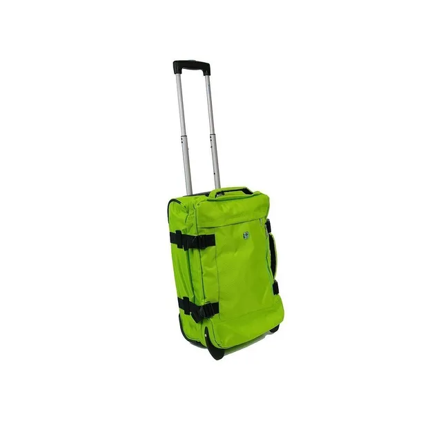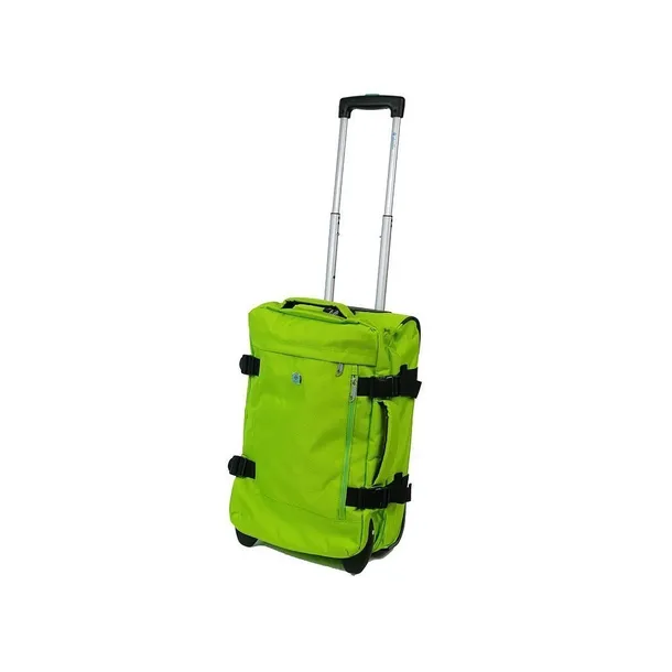 Mała torba podróżna na dwóch kołach włoskiej marki Dielle. Spełnia normy bagażu kabinowego większości linii lotniczych.Wykonana z bardzo wytrzymałego poliestru wzmacnianego. Posiada teleskopowo wysuwany stelaż, dwa stabilne koła, wzmacniane dno. Wygodne uchwyty z boku i u góry ułatwiają umieszczenie jej w bagażniku auta lub zdjęcie z lotniskowego transportera. Dwie kieszenie zewnętrzne na podręczne drobiazgi. System regulowanych bocznych pasów pozwala na dopasowanie kształtu torby w zależności od ilości rzeczy które aktualnie zostały spakowane, tak aby bezpiecznie je transportować. Komora główna torby zabezpieczona jest zamkiem szyfrowym w standardzie TSA. Wnętrze wyłożone podszewką podzielone jest na ergonomicznie zaprojektowane kieszenie. W jednej z nich znajdują się regulowane pasy.