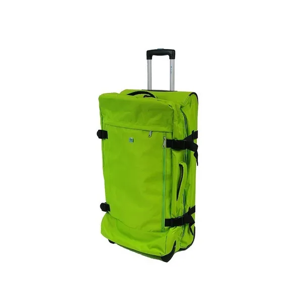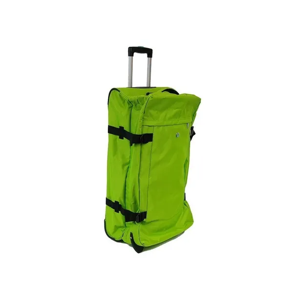 Duża torba podróżna na dwóch kołach włoskiej marki Dielle. Wykonana z bardzo wytrzymałego poliestru wzmacnianego. Posiada teleskopowo wysuwany stelaż, dwa stabilne koła, wzmacniane dno. Wygodne uchwyty z boku i u góry ułatwiają umieszczenie jej w bagażniku auta lub zdjęcie z lotniskowego transportera. Dwie kieszenie zewnętrzne na podręczne drobiazgi. System regulowanych bocznych pasów pozwala na dopasowanie kształtu torby w zależności od ilości rzeczy które aktualnie zostały spakowane, tak aby wygodnie je transportować. Komora główna torby zabezpieczona jest zamkiem szyfrowym w standardzie TSA. Wnętrze wyłożone podszewką podzielone jest na ergonomicznie zaprojektowane kieszenie. W jednej z nich znajdują się regulowane pasy.