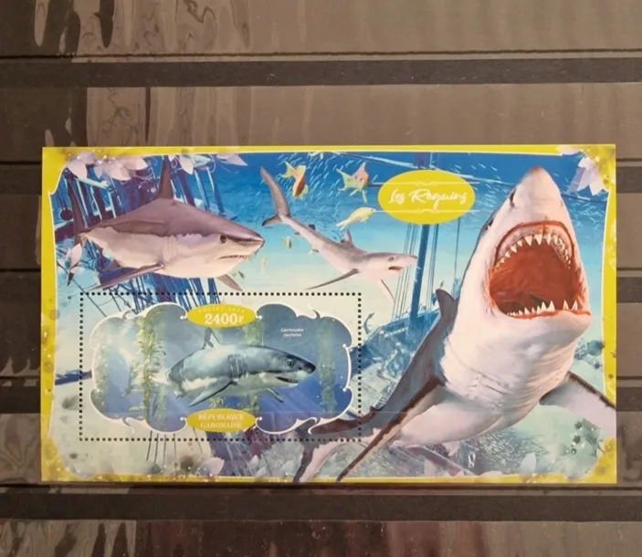 2020 Bloczek Ryby Rekiny Gabon czysty perf.