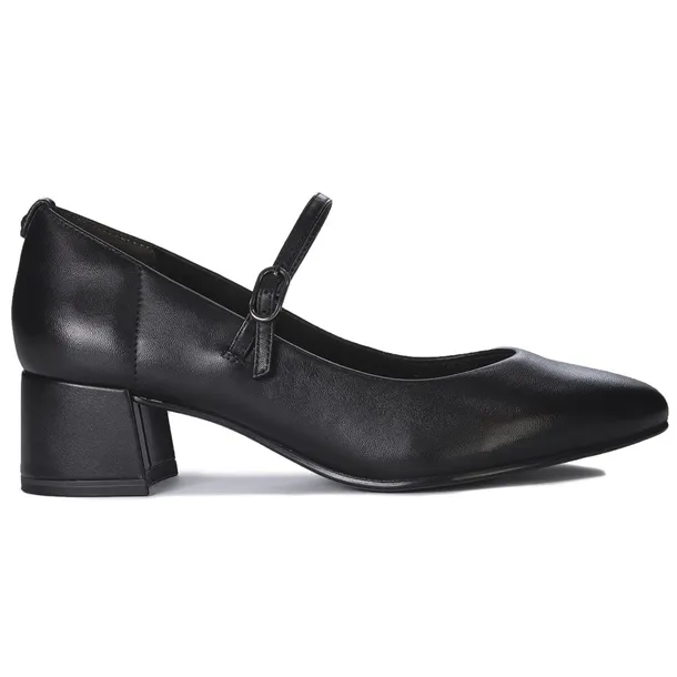 Prezentowany model od marki Tamaris to klasyczne, czarne czółenka wykonane z naturalnej skóry. Okrągły, delikatnie migdałowy nosek dodaje im wyjątkowej elegancji. Wnętrze butów wykończono miękką tkaniną, zapewniającą komfort. Wkładka ze skóry, profilowana i podklejona miękką pianką, gwarantuje dużą wygodę. Stabilny obcas w kształcie słupka zapewnia solidne wsparcie dla całej sylwetki, a dodatkowy elastyczny pasek ze sprzączką ułatwia dopasowanie obuwia do stopy. Piękna linia cholewki wraz z obcasem optycznie wysmukla nogi, dodając stylizacji elegancji. Idealne do noszenia w biurze, jak i na wieczorne wyjścia.