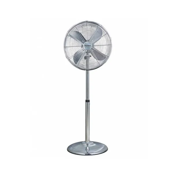 Łatwy w montażu, wentylator podłogowy, dający delikatne uczucie chłodu w upalne dni. Urządzenie posiada trzystopniową regulację prędkości nawiewu. Wyposażone jest w funkcję automatycznej oscylacji, dzięki czemu może obracać się w kierunkach bocznych. Zwiększa to zasięg oddziaływania urządzenia. Solidna podstawa zapobiega upadkowi, a możliwość regulacji wysokości za pomocą rury teleskopowej, pozwala dodatkowo na ustawienie odpowiedniego pułapu nawiewu. Wentylator wykonany jest z chromowanego metalu co nadaje mu elegancką, nowoczesną formę.