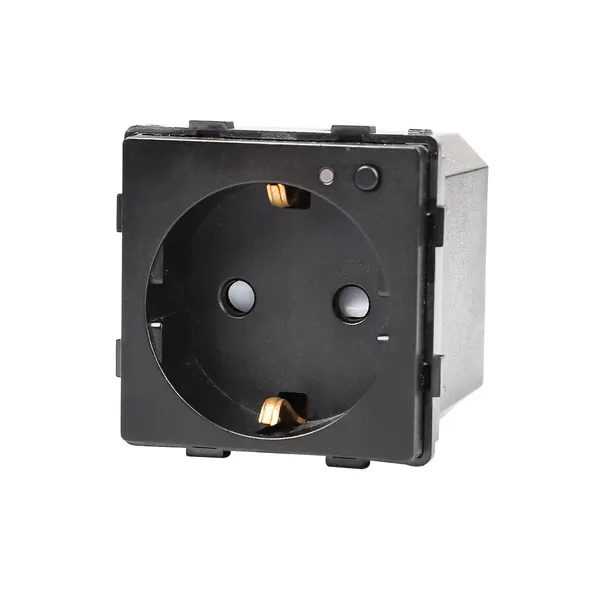 Moduł gniazda elektrycznego schuko z przyciskiem - WiFi - 16A czarny - TM634B - TOUCHME, to funkcjonalny element przeznaczony do szklanych oraz aluminiowych ramek z serii Touchme. Gniazdko elektryczne umożliwia doprowadzenie energii elektrycznej do podłączonych odbiorników, zapewniając dostęp do sieci elektrycznej dla urządzeń przeznaczonych na napięcie 230V. Pozwala to na zwiększenie funkcjonalności instalacji elektrycznej oraz jej poszerzenie.
