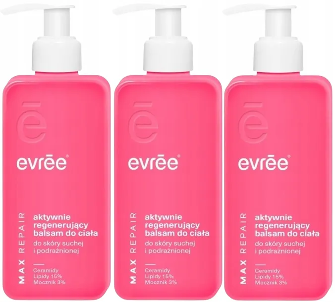 3 x Evree Aktywnie Regenerujący Balsam Do Ciała 300ml Ceramidy Odżywienie