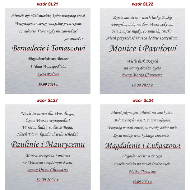 Przykładowe wzory grawerów z dedykacją na Ślub: