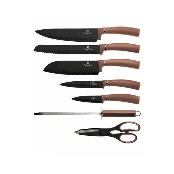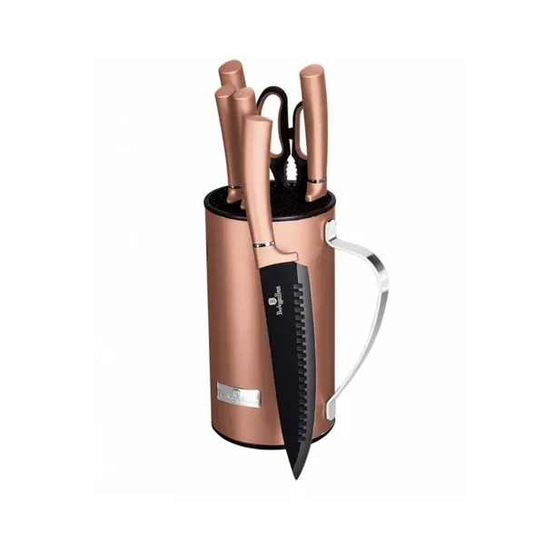 7 elementowy zestaw noży na stojaku firmy BERLINGER HAUS z serii Rose Gold.