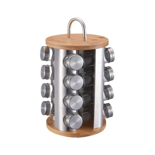 • Szklane pojemniki z pokrywą stalową: - 16 szt. • Obrotowy stojak z bambusa : - 1 szt.