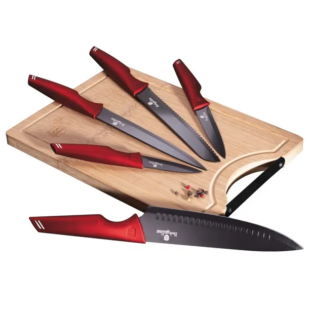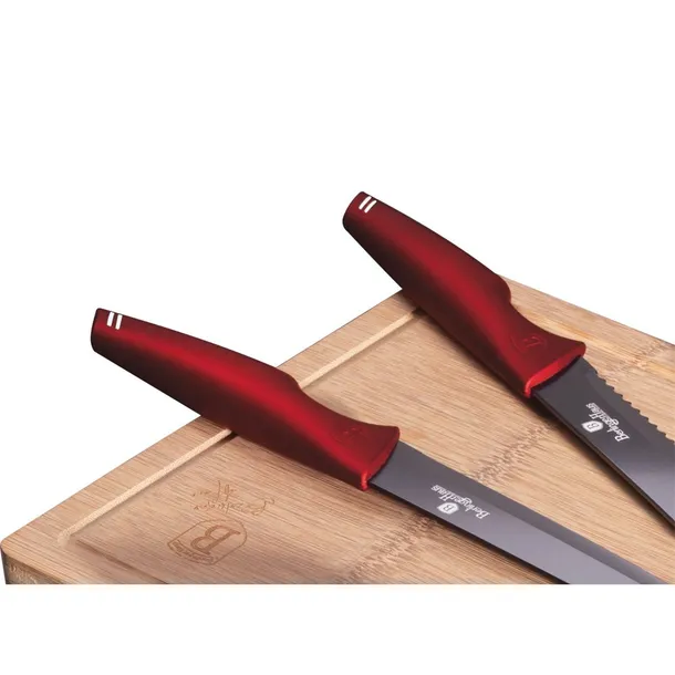 Zestaw 5 noży z bambusową deską do krojenia firmy BERLINGER HAUS z serii Burgundy Collection.