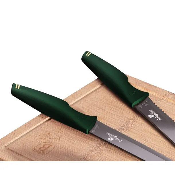 Zestaw 5 noży z bambusową deską do krojenia firmy BERLINGER HAUS z serii Emerald Collection.