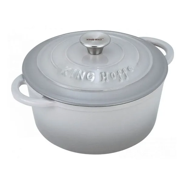 Z zewnątrz garnek pokryty warstwą szarej, żaroodpornej emalii. Od środka warstwa beżowej emalii.