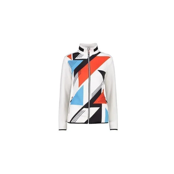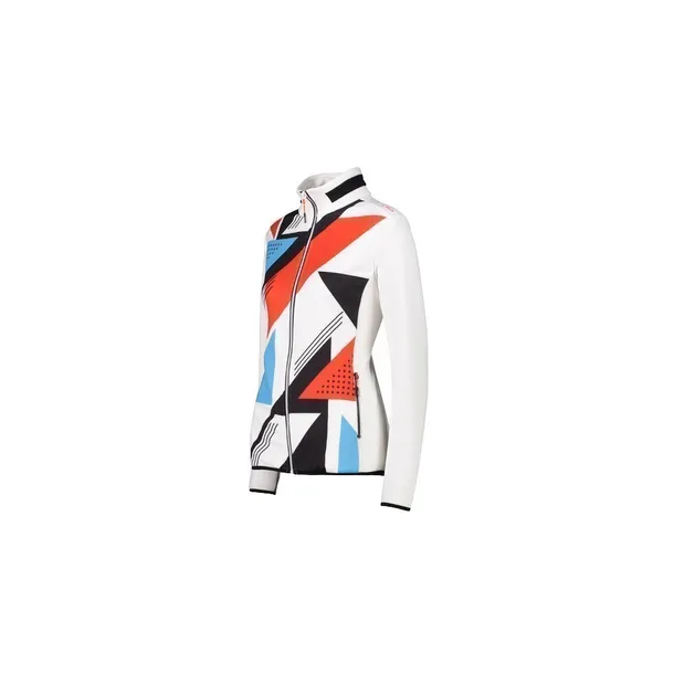 BLUZA DAMSKA CMP 31E0856 biała wykonana została z lekkiego polarowego materiału Stretch Performance, który charakteryzują się doskonałymi właściwościami izolacyjnym, oddychającymi. Geometryczne wzory w różnych kolorach przełamują klasyczną biel bluzy.