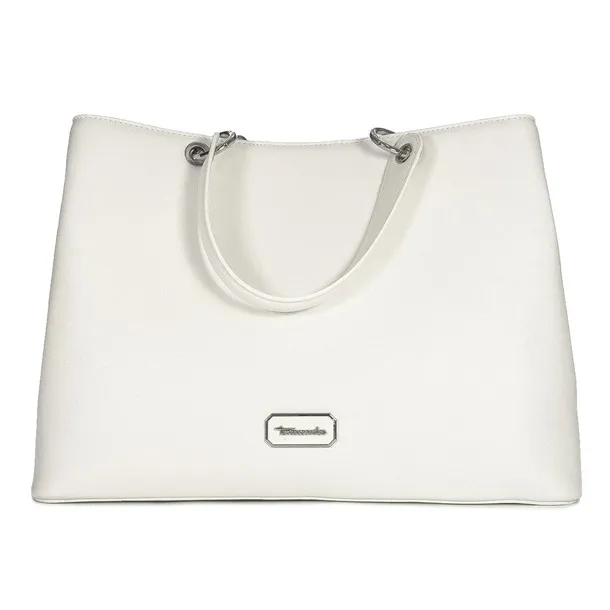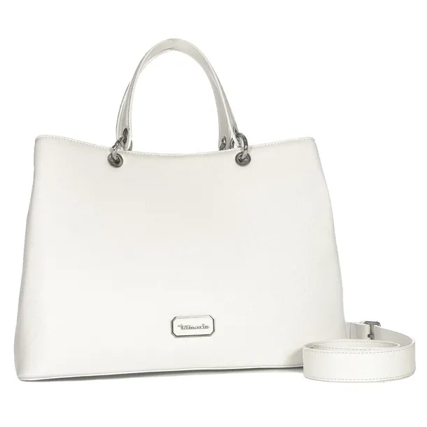 Marka Tamaris jest doceniana za doskonałą stylistykę, nowoczesne wzornictwo i wygodę. Oferta marki Tamaris obejmuje między innymi obuwie, torby i torebki damskie wykonane z najlepszej jakości materiałów. Torby powstają z zastosowaniem nowoczesnych technologii, dzięki czemu są wyjątkowo trwałe. Z najnowszej kolekcji Tamaris przedstawiamy praktyczną torebkę damską klasyczną wykonaną ze skóry ekologicznej w kolorze białym White. Torebka jest dużego rozmiaru, zmieści format A4. Trzykomorowa zapinana na magnesy oraz zamek błyskawiczny. We wnętrzu znajduje się jedna otwarta kiszonka np na telefon oraz jedna zapinana na suwak. Dwie komory boczne zapinane na magnes, środkowa na suwak. Środek wyściełany jest tkaniną. Torebka na odpinanym, regulowanym pasku, posiada również uchwyty o długości 30 cm. Wymiary torebki: szerokość: 36 cm, wysokość: 26 cm, głębokość: 15 cm.