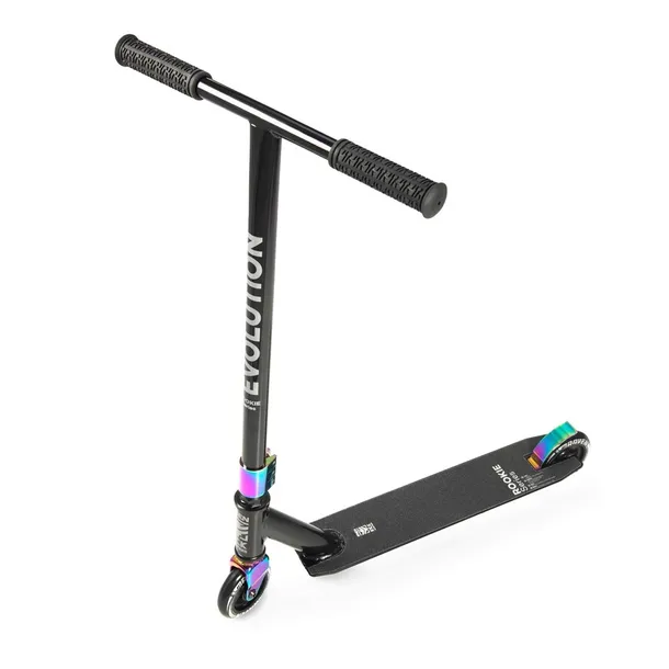Hulajnoga Raven Evolution Rookie Series Color to wyczynowa hulajnoga zaprojektowana do jazdy freestylowej. Za sprawą zastosowania odpowiednich stopów aluminium, a także stali chromowej udało się uzyskać znacznie większą sztywność oraz trwałość konstrukcji zachowując niewielką wagę. Kierownica została wykonana ze stali węglowej pozwala na wykonywanie najrozmaitszych ewolucji. Użycie potrójnego mocowania pierścienia kierownicy umożliwia dynamiczną jazdę.