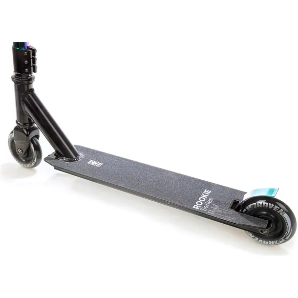 Hulajnoga Raven Evolution Rookie Series Neo Chrome to wyczynowa hulajnoga zaprojektowana do jazdy freestylowej. Za sprawą zastosowania odpowiednich stopów aluminium, a także stali chromowej udało się uzyskać znacznie większą sztywność oraz trwałość konstrukcji zachowując niewielką wagę. Kierownica została wykonana ze stali węglowej pozwala na wykonywanie najrozmaitszych ewolucji. Użycie potrójnego mocowania pierścienia kierownicy umożliwia dynamiczną jazdę.