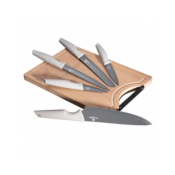 Zestaw 5 noży z bambusową deską do krojenia firmy BERLINGER HAUS z serii Aspen Collection.