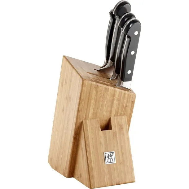 Noże z serii ZWILLING Pro oferują zarówno profesjonalnym kucharzom, jak i amatorom gotowania, idealne połączenie innowacyjnej technologii, tradycyjnych cech konstrukcyjnych i wyjątkowej precyzji. Zostały zaprojektowane przez uznanego na całym świecie projektanta Matteo Thuna i są najbardziej przyjaznymi dla użytkownika nożami na rynku, zapewniając mu komfort pracy i precyzję cięcia. Innowacyjnie zakrzywiony wałek jest przedłużeniem ręki, wspierając profesjonalny i stabilny chwyt. Noże wykonane są ze stali specjalnej, która została udoskonalona przez ponad 280 lat produkcji. Dzięki połączeniu z charakterystyczną dla ZWILLING technologią hartowania lodem (FRIODUR ® ), możesz być posiadaczem ostrzy twardszych, ostrzejszych i bardziej odporne na plamy niż dotąd posiadałeś. Ostrza są kute z jednego kawałka stali (SIGMAFORGE), dzięki czemu są wyjątkowo mocne, wyważone i elastyczne. Każdy nóż jest szlifowany i ręcznie wykończony przez najbardziej wykwalifikowanych rzemieślników. Zestaw zawiera noże przydatne do przygotowywania potraw zwłaszcza w stylu azjatyckim, jednakże można ich używać w każdej kuchni. Do zestawu ZWILLING Pro należą: Nóż do obierania warzyw (10 cm) Nóż Santoku (18 cm) Tasak (15 cm) Chiński tasak (18 cm) bambusowy blok na noże Wszystkie noże ZWILLING Pro wyprodukowano w Niemczech.