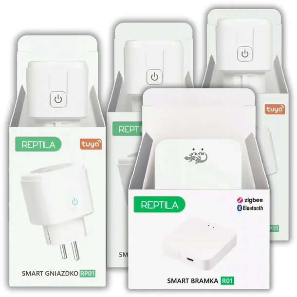 Zestaw 3 x Inteligentne gniazdko z pomiarem poboru mocy RP01 + Brama R01 pracujący w systemie TUYA z funkcją łączności ZigBee marki Reptila