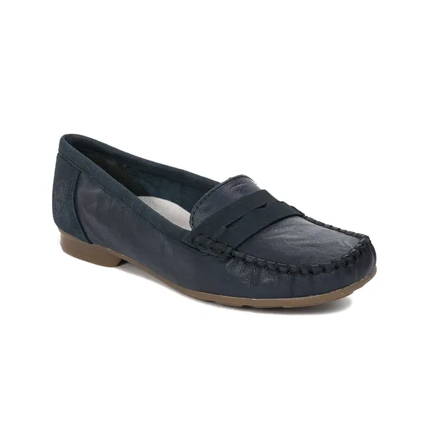 Mokasyny damskie to rodzaj obuwia, który nigdy nie wyjdzie z mody. Prezentujemy najnowszy model renomowanej marki Rieker. Wierzch wykonany został znaturalnej skóry licowej oraz skóry ekologicznej w kolorzegranatowym "Pazifik Blue". Wnętrze to wysokiej jakości tworzywo. Wkładka zeskóry naturalnejpodklejona miękką pianką daje poczucie niezwykłego komfortu i wygody. Podeszwa z wysokogatunkowego tworzywa jest bardzo elastyczna, dobrze wyprofilowana i znacząco wpływa na przyczepność do podłoża. Nosek ma okrągły kształt, co zapewnia stopom dużo miejsca i swobody. Dzięki tym połączeniom wygoda i super look gwarantowany.