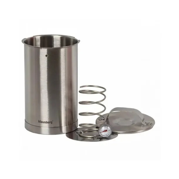 Prosty w obsłudze i budowie. Składa się z głównego pojemnika, płytki dociskowej i pokrywki ze sprężynką.