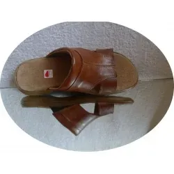 Bardzo modne i wygodne klapki męskie świetnego polskiego producenta przeznaczone dla panów, którzy mają problemy z dopasowaniem obuwia ze względu na szerszą stopę. Klapki zostały wykonane w całości z wysokiej jakości skóry naturalnej w kolorze brązowym. Dodatkowo z boku została wszyta guma w celu zwiększenia komfortu użytkowania ich na co dzień przez co idealnie nadają się do chodzenia po domu i noga się w nich nie męczy (posiadają tęgość H).