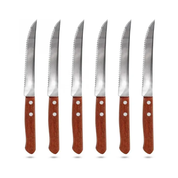 - Zestaw 6 noży ze stali nierdzewnej z drewnianymi uchwytami.