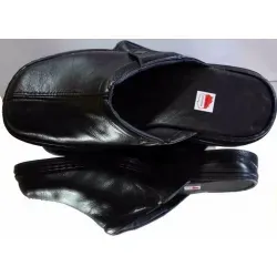 Bardzo ładne i wygodne klapki męskie w kolorze czarnym przeznaczone dla panów którzy mają problemy z dopasowaniem obuwia ze względu naszeroką stopę. Wykonane są w całości ze skóry naturalnejdodatkowo z boku została wszyta gumka w celu zwiększenia obwodu co sprawia, że idealnie one pasują na szeroką stopę i idealnie sprawdzają się w użytkowaniu na co dzień (posiadają tęgość H).