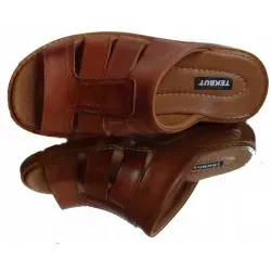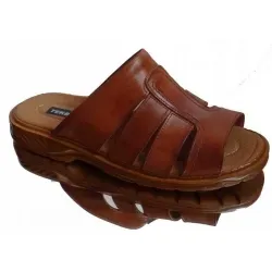 Bardzo modne i wygodne klapki męskie w kolorze brązowym przeznaczone dla panów, którzy mają problem z dopasowaniem obuwia ze względu na szerszą stopę. Wykonane one zostały w całości z wysokiej jakości skóry naturalnej, idealne do chodzenia po domu (posiadają tęgość H).