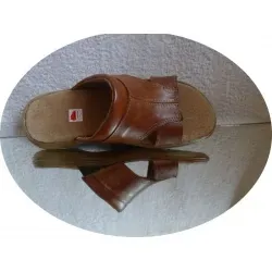 Bardzo modne i wygodne męskie klapki przeznaczone dla panów którzy mają problemy z dopasowaniem obuwia ze względu na szerszą stopę. Wykonane są w całości z wysokiej jakości skóry naturalnej w kolorze brązowym dodatkowo z boku została wszyta guma dzięki czemu klapki te idealnie się wpasowują w szerszą stopę, są przy tym bardzo wygodne i idealnie sprawują się w chodzeniu w nich na co dzień (posiadają tęgość H).