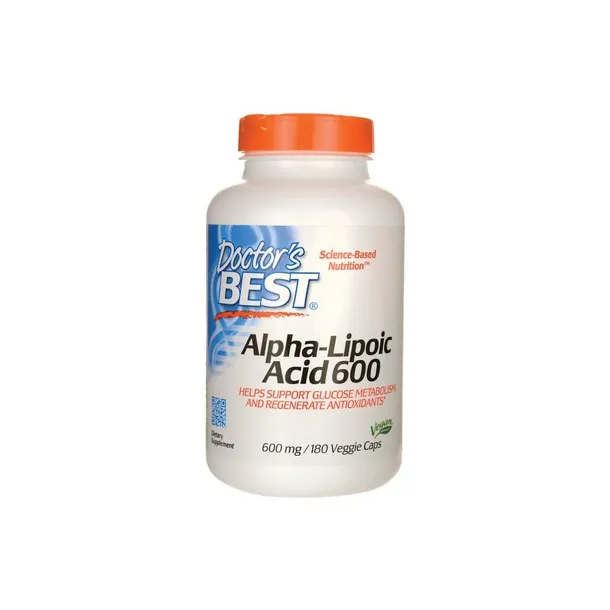 Doctor’s Best to amerykańska firma, która od ponad 20 lat specjalizuje się w produkcji suplementów. Wysokiej jakości surowce i nowoczesne metody produkcyjne sprawiają, że suplementy tej marki powstają w oparciu o potrzeby klientów. W składzie Doctor’s Best Kwas Alfa Liponowy 600 mg znajdziesz jedynie kwas alfa-liponowy otoczony wegańską otoczką. Oba te składniki tworzą łatwą do połknięcia kapsułkę. W opakowaniu znajdziesz ich aż 180. Dziennie zaleca się przyjmować jedną kapsułkę, zatem wybierając suplement Doctor’s Best Kwas Alfa Liponowy w kapsułkach wiesz, że inwestujesz w jeden produkt, który możesz przyjmować przez dłuższy czas.