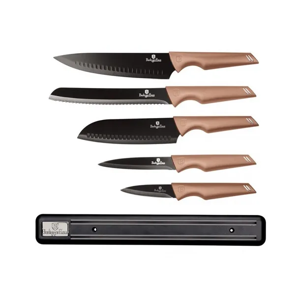 Zestaw 5 noży z listwą magnetyczną firmy BERLINGER HAUS z serii Rose Gold Metallic Collection.