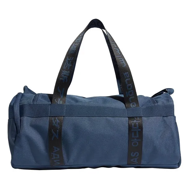 Torba Adidas w kolorze granatowym idealna na trening lub na codzienne wypady. Wykonana z wysokiej jakości poliestru pochodzącego z recyklingu, co przyczynia się do ochrony środowiska. Posiada komorę główną zasuwaną dwubiegunowym zamkiem, który ułatwia szybki dostęp do schowanych przedmiotów. Dodatkowo torba posiada wewnętrzną trzy małe kieszonki, który są idealne na drobiazgi typu klucze, portfel czy kosmetyki. Po boku umieszczono zasuwane kieszonki - jedną całą z siatki oraz drugą wentylowaną, które mogą przydać się do przechowywania stroju kąpielowego, obuwia lub wilgotnej koszulki. Regulowany, wyściełany uchwyt oraz krótkie rączki pozwolą ci na indywidualne dopasowanie, a jeszcze wyższą wygodę zapewnia miękkie zabezpieczanie paska. Detale te zmniejszają ryzyko podrażnia twojej skóry nawet przy całodniowym użytkowaniu torby sportowej. Torba Adidas w granatowej kolorystyce jest praktyczna i sprawdzi się w wielu sytuacjach. Napisy na czarnych taśmach urozmaicają prosty design, jednocześnie nie zaburzają stonowanej kolorystyki tego modelu. Sportowego charakteru dodaje minimalistyczne logo marki Adidas. Produkt jest nowy, oraz oryginalny.
