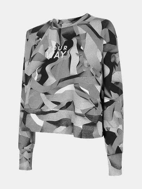 Damska bluza oversize z okrągłym dekoltem. Rękawy i dół bluzy wykończone ściągaczem. Na przodzie biały napis "your way". Miękka i przyjemna w dotyku. Idealnie uzupełni każdą stylizację.