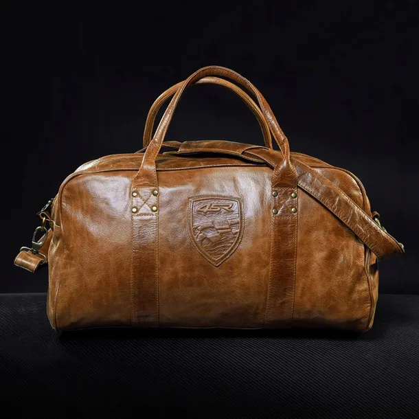 Skórzana torba Cognac jest wytworzona z woskowanej Pull-up skóry w błyszczącym brązowym kolorze. 4SR skórzana, podróżna torba Cognac z odpinanym paskiem: